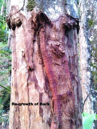 Despite this initial treatment, all of the introduced trees need regular checks to assess their rate of deterioration. During these checks the team observed that some of the trees that were only ring-barked initially were showing signs of defence responses, such as bark re-growth, re-sprouting and aerial roots.